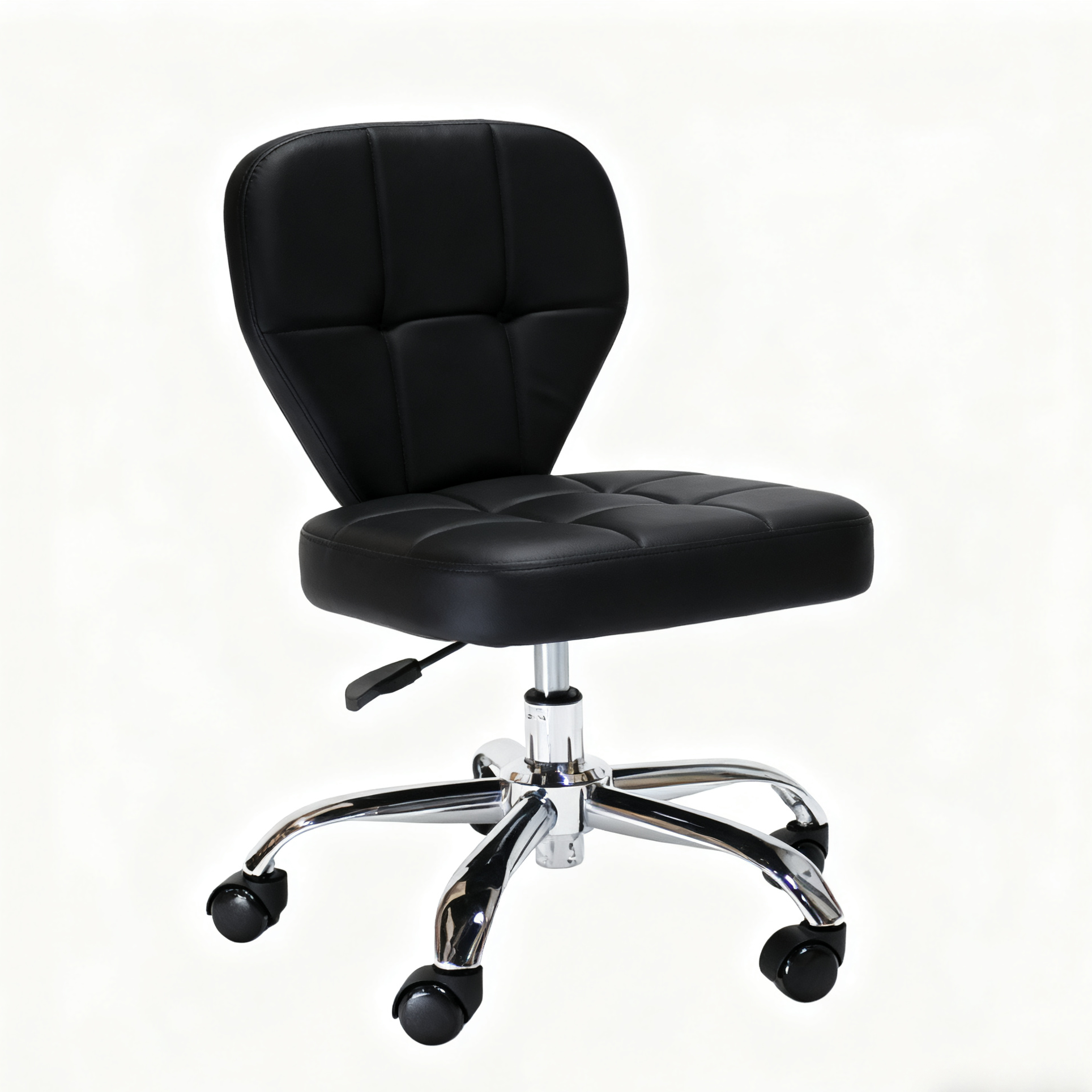 BeautéSync® Ergonomic Salon Stool with PU Leather Seat, 500 mm Steel Base & Smooth Casters, Black