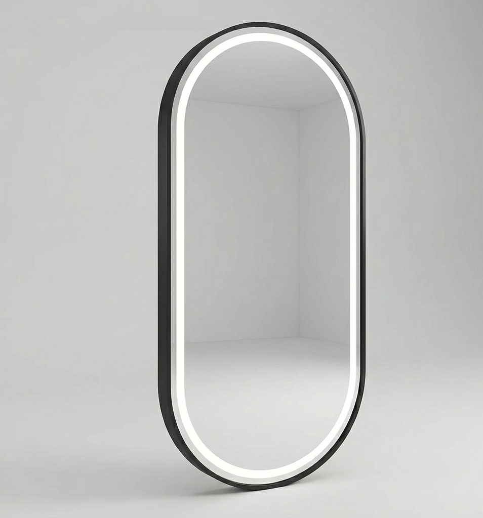 BeautéSync® Hair Salon Mirror, Oval Shape with LED Backlit Strip, aluminum alloy frame
