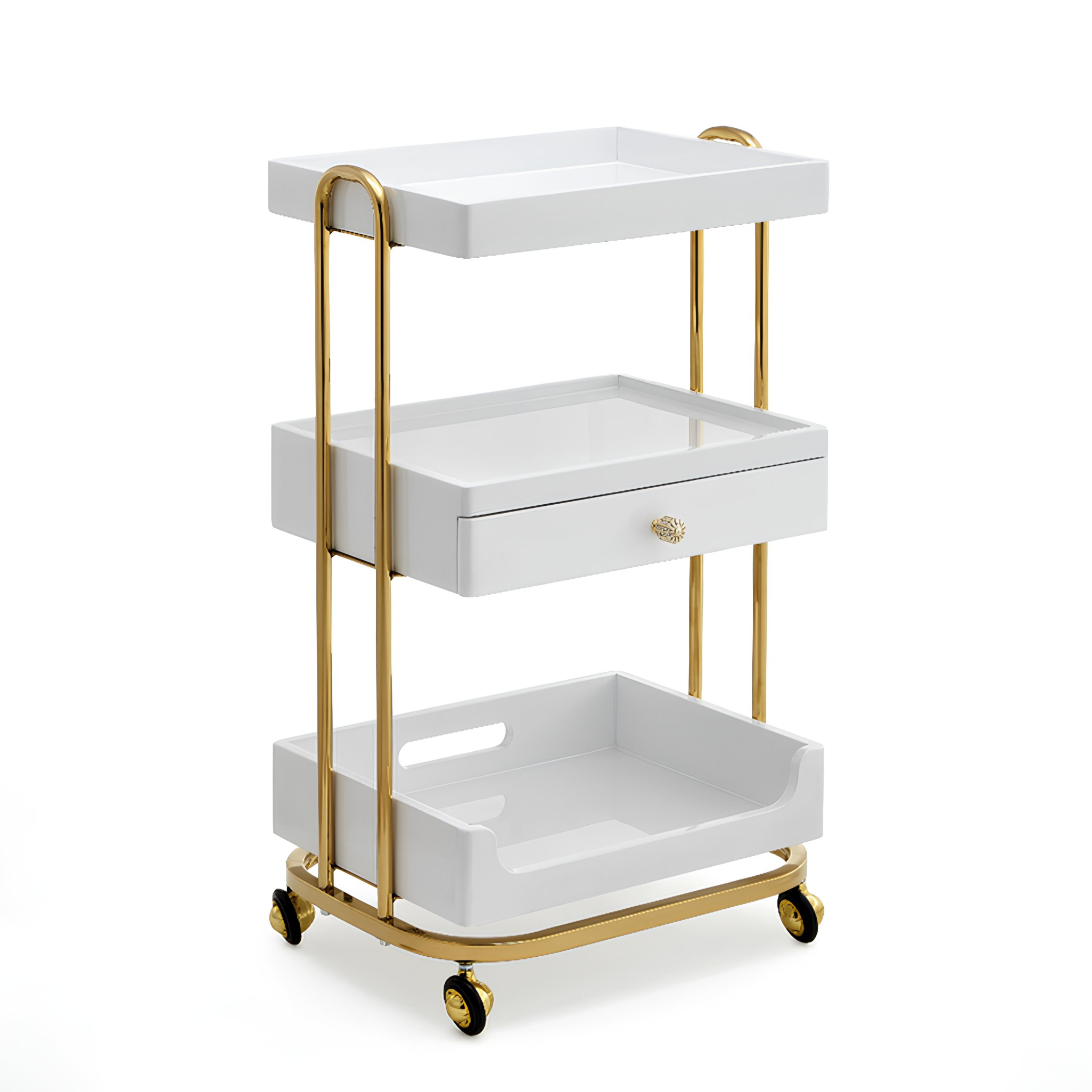 Compact Multi-Level Storage: This BeautéSync 3-tier salon trolley features three spacious tiers, including integrated drawer storage to keep your tools, products, and accessories clean and concealed....