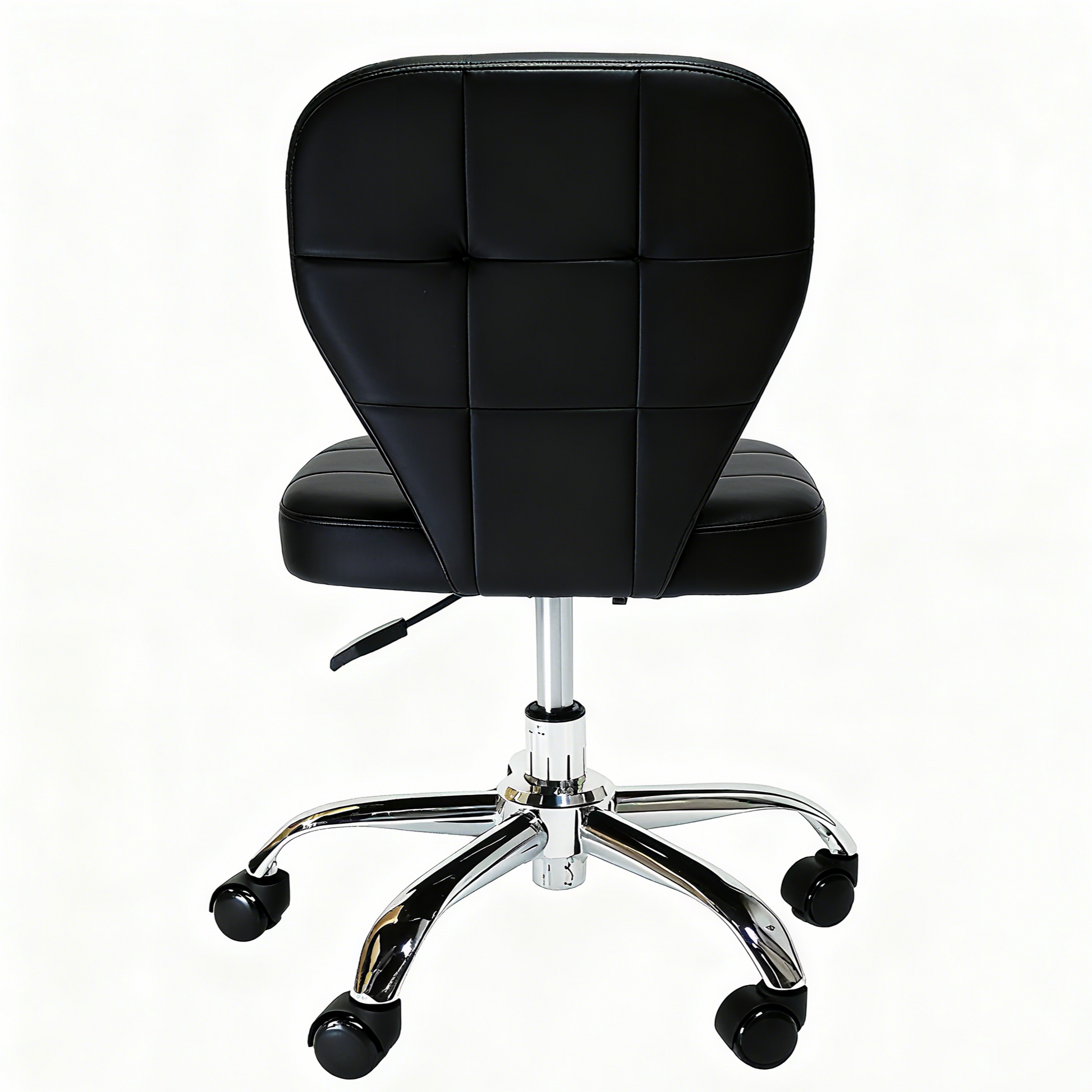 BeautéSync® Ergonomic Salon Stool with PU Leather Seat, 500 mm Steel Base & Smooth Casters, Black