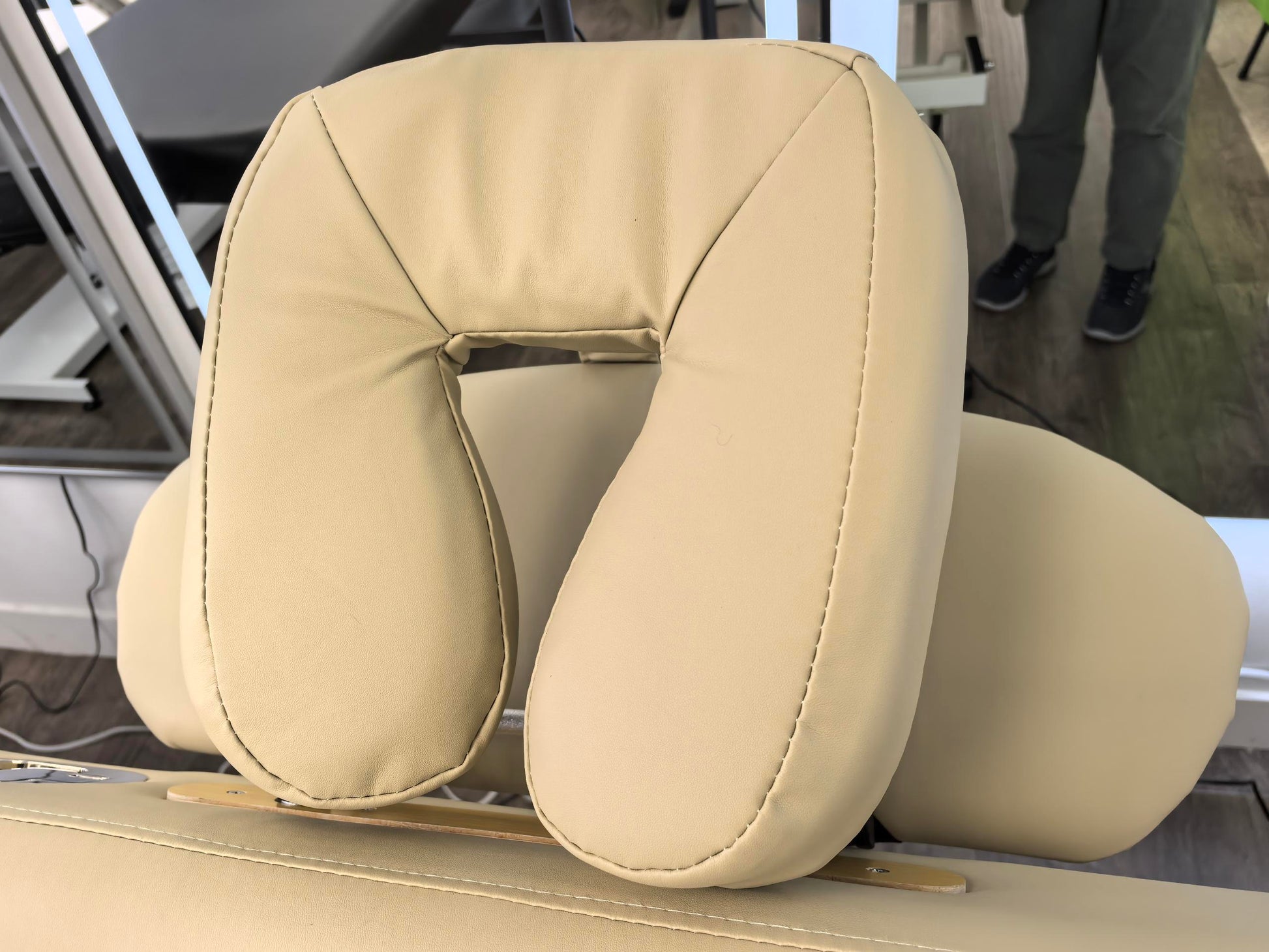 The BeautéSync® One-Motor Two-Section Electric Beauty Bed is crafted to elevate spas, salons, and clinics with refined comfort and sleek aesthetics. Featuring an ultra-quiet motor for smooth height control and gas-lift-assisted backrest adjustment, it provides versatility for facials, massages, prenatal care, and rehabilitation treatments.