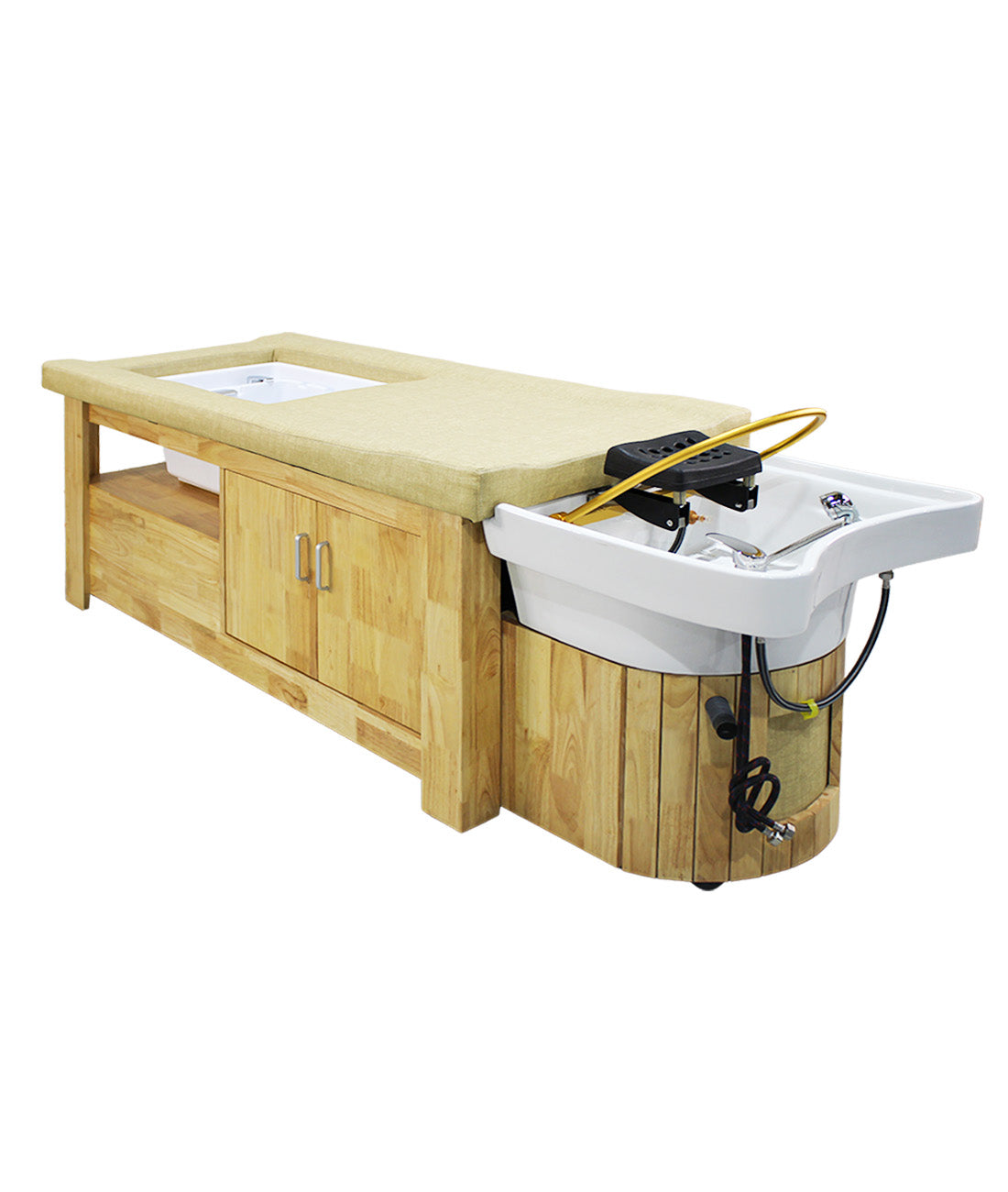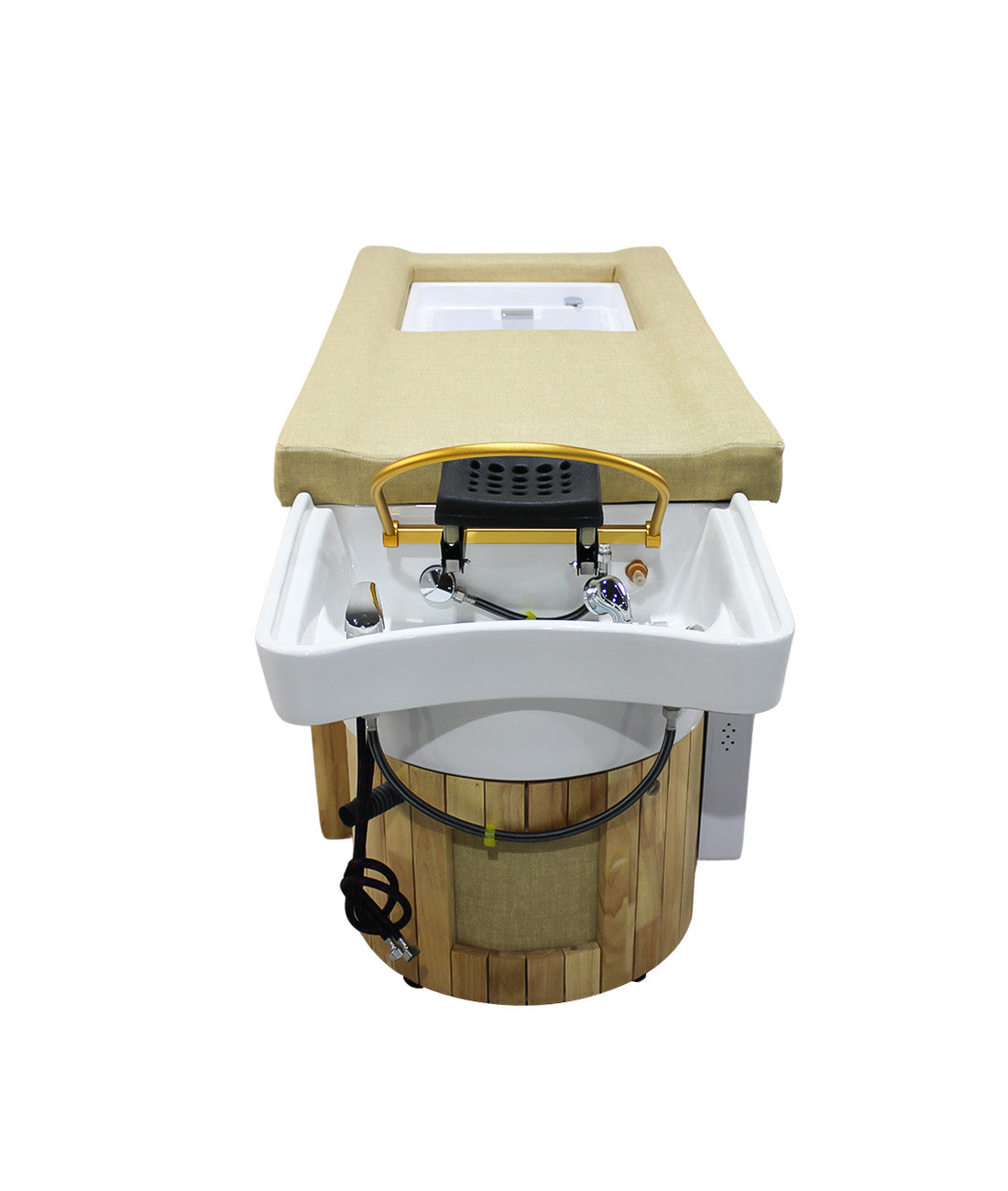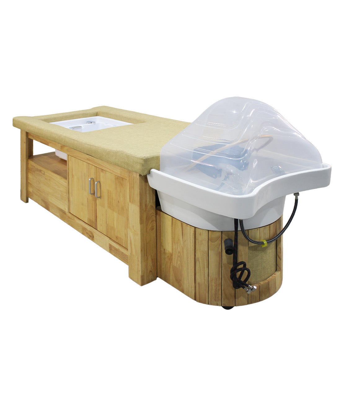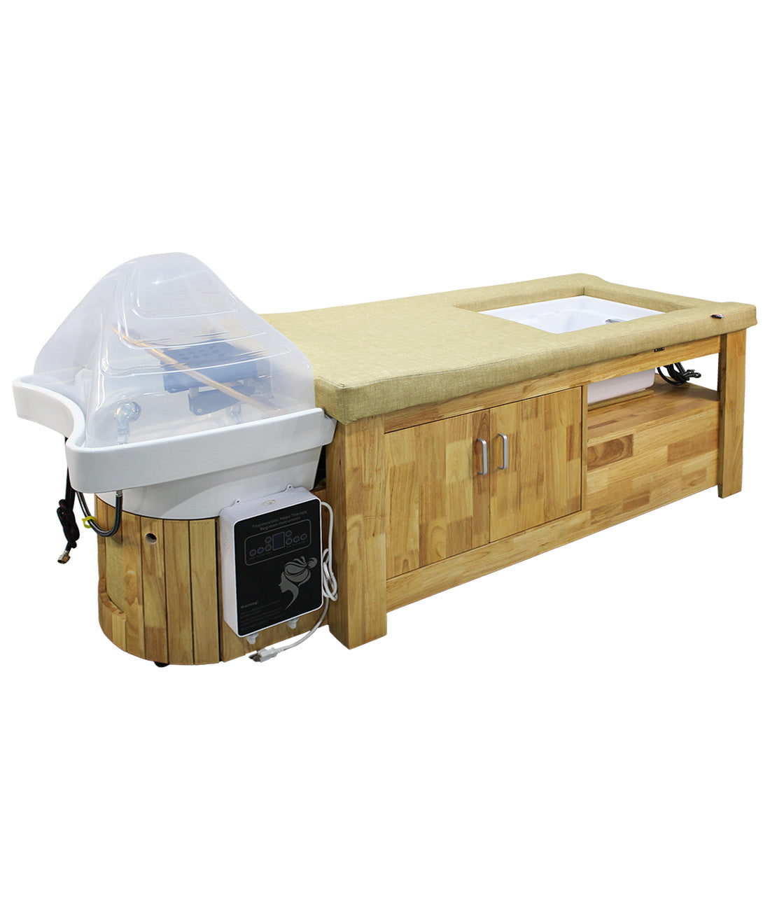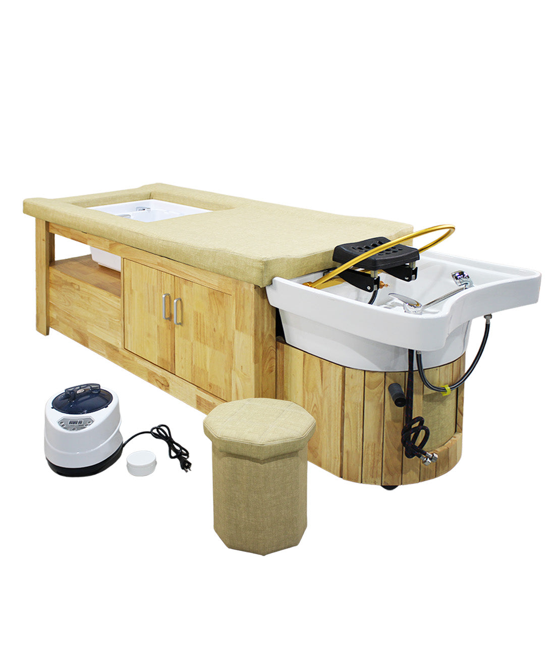 BeautéSync® Professional Head Spa Shampoo Bed – Wooden Japanese Thai-Style Massage & Hair Washing Station with Steam & Foot Basin