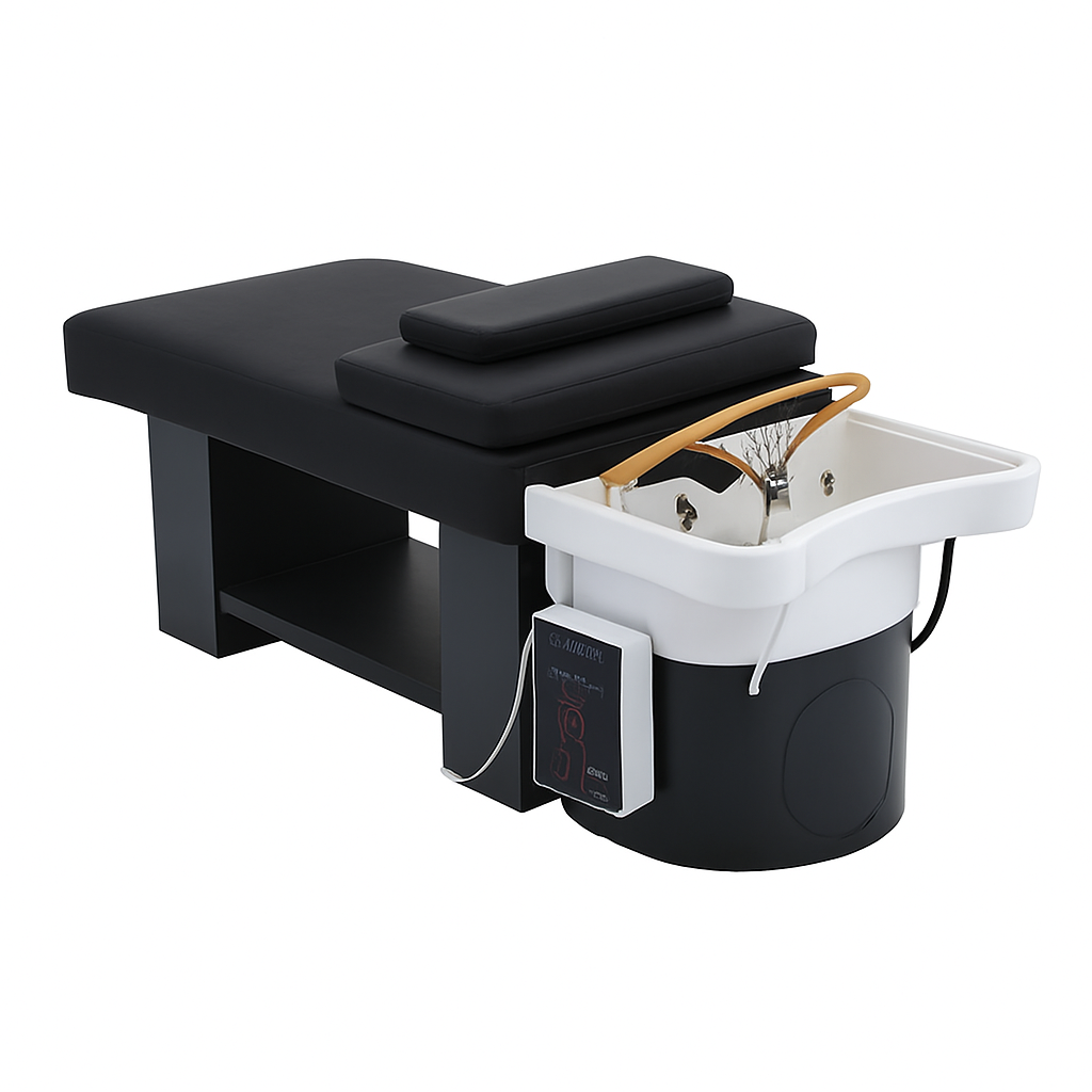 The BeautéSync® Head Spa Shampoo Bed is a full-featured professional spa station tailored for high-end salons and wellness clinics. Featuring a ceramic shampoo basin, acrylic foot basin, circulating warm water system, and steam therapy hood, it provides an immersive, top-to-toe treatment experience rooted in Japanese and Thai spa practices.